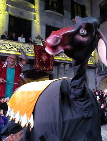 Arribats els gegants i capgrossos de la ciutat, amb els seus bastoners, els de Santa Eugènia, de l'Esquerra del Ter, i la Mula Baba a la plaça del Vi, varen fer ballades, en les que també va participar el Beatusaure, en Gerió i el Petit Drac Major, mentre que l'Àguila de la ciutat, amb el seu ball cerimonial de benvinguda a la ciutat i el gegants de la ciutat varen ballar després del pregó.