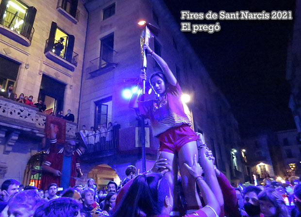 El dijous 28 d'octubre 2021, dia d'inici de les Fires de Sant Narcís, va tenir lloc el Pregó, activitat que dona el tret de sortida de les diverses activitats. En aquesta edició va anar a càrrec del GEiEG pel seu centenari. Desprès de la lectura a càrrec del president de l'entitat, Francesc Cayuela, una torxa olímpica va creuar la plaça i Jordi Araus va encendre un peveter. Hi va participar la secció sardanista ballant una sardana en un dels balcons de la plaça, i finalment unes pilotes gegants de futbol volaven de banda a banda de l’espai.
