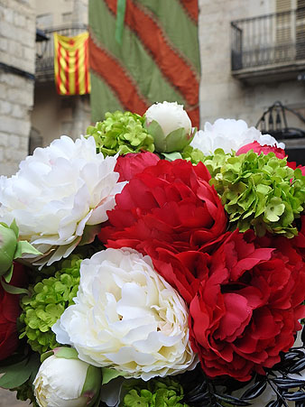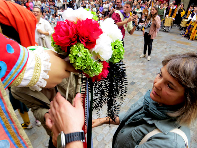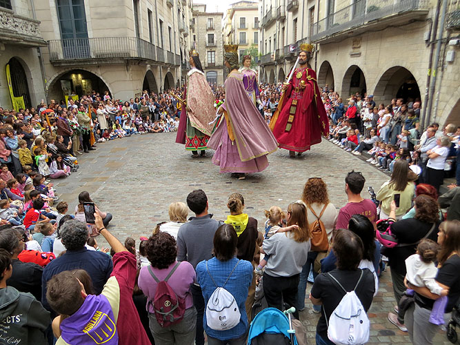 Arribades les gegantes a la plaça del Vi, les germanes Roser i Anna Maria Recasens, que porten la botiga "Recorda-te’n", l'alcalde de Girona, Lluc Salellas, i el 2n tinent d'alcaldia i regidor de Cultura, Quim Ayats, varen canviar els rams de les gegantes. Seguidament varen ballar els gegants i les gegantes.