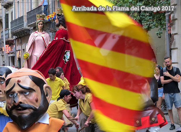 El divendres 23 de juny 2017, vigília de la festivitat de Sant Joan, va tenir lloc l'arribada de la Flama del Canigó a la ciutat de Girona, un dels actes més tradicionals, simbòlics i reivindicatius del país. va ser rebuda a la plaça de Sant Pere a les sis de la tarda des d'on va ser portada, amb cercavila, a la plaça del Vi. A l'esdeveniment hi varen participar Fal·lera Gironina, els Gegants i capgrossos de Santa Eugènia juntament amb la Banda Marcial Hondurenya 504, els Marrecs de Salt, els Diables de l’Onyar i el GEiEG. Després de la dansa de l'Àliga de la ciutat, l’actor i director teatral Pep Cruz va llegir el manifest, escrit per l’activista cultural i històric defensor de la flama Toni Ayala.
