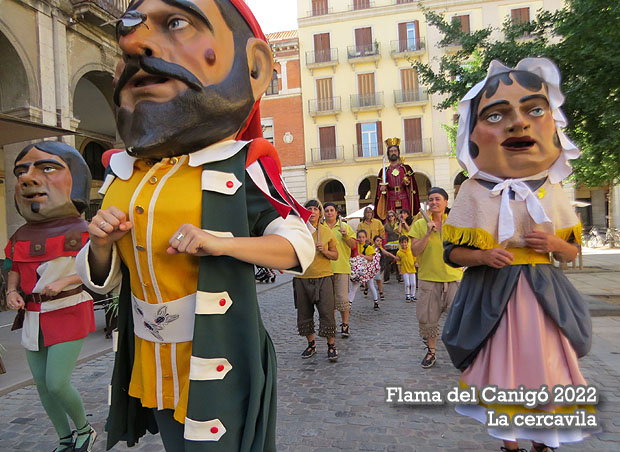 La Flama va ser acompanyada per una cercavila amb els gegants i capgrossos de la ciutat, bastoners i música de la Fal·lera Gironina, des de la plaça de la Independència, passant pel carrer de Santa Clara i el pont de Pedra, per arribar a la plaça del Vi.