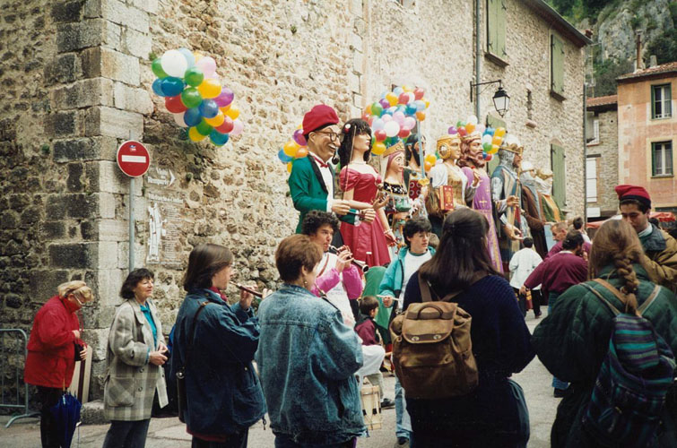 (Ampliar) - Els gegants Cugat i la Musa al Passeig Arqueolòic, el 1993