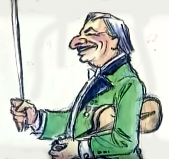 Els gegants d'en Cugat i la seva Musa. Dibuix de Nuxu Perpinyà, publicat al Diari de Girona del diumenge 16 de juliol de 1995.