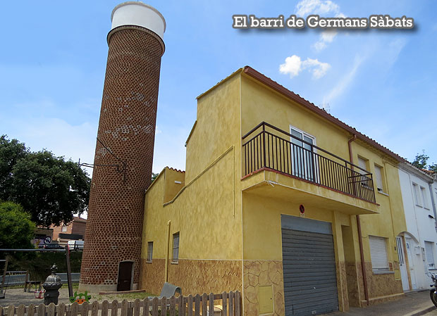 L'actual barri de Germans Sàbat té el seu origen en un grup inicial de 227 cases construïdes pel Patronato Provincial de la Vivienda de Gerona i inaugurat el 12 d'agost de 1958. Un símbol molt identificatiu del barri és la torre de l'aigua. coneguda com el pou, una imponent torre circular de 20,65 metres d'alçada i 3 metres de diàmetre, construïda de maó, que subministrava l'aigua al barri, des de 1958. Un element curiés de Germans Sàbat és un pont de ferro, sobre la riera Bullidors, construït per l'empresa Eiffel, la mateixa que va fer el pont de les Peixateries Velles, que després d'estar a diversos indrets de la ciutat, finalment va ser traslladat al barri.