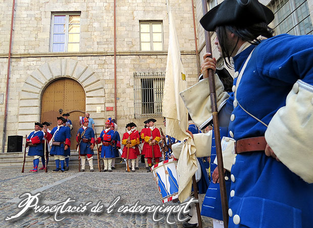 Les activitats de la tarda es varen iniciar amb la presentació de l'esdeveniment i el context històric a càrrec de Josep Campmajó i del president de l'Associació Miquelets de Girona - Regiment de Sant Narcís, Jesús Pastor, a la plaça de la Catedral.