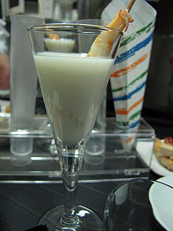 - “Ajoblanco” suau amb un llagostí al vapor.