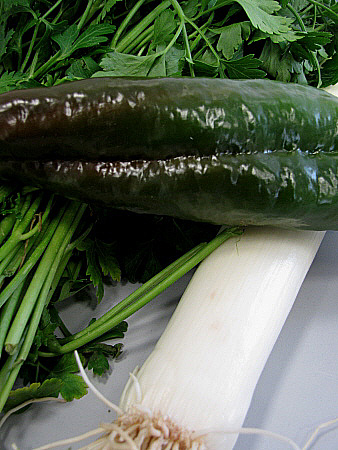 Torrar i picar els pistils de safrà junt amb els alls pelats i el julivert. Reservar.