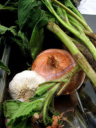 Netegem les plantes de borratja, només aprofitarem les tiges que netejarem amb un fregall per treure'n tots els pèls. Si la planta té flors les reservem per decorar.