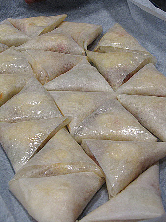 Heu de treballar la pasta brick molt ràpidament perquè de seguida queda seca. Millor tapar amb un drap humit les làmines que no haguem treballat.