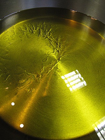 (A la sessió s'ha acompanyat d'un cruixent d'alfàbrega, que cal fregir-lo amb molt de compte, tapant-lo ràpidament, per evitar cremar-nos amb els esquitxos)