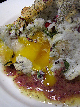 Rovell d'ou dins un niu de merenga de flors