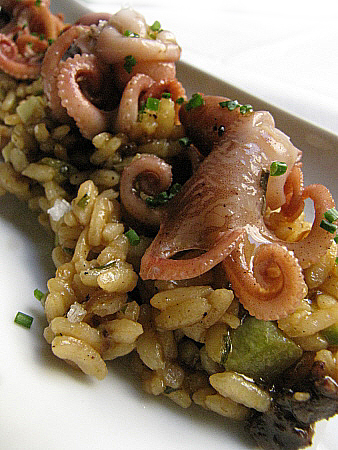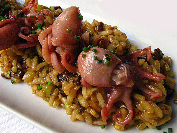 De primer, una sopa de tomàquet amb gambes i gelat de formatge. Seguidament, un arròs amb botifarra negra, carbassó i popets saltejats al moment. I de postres, xuixo fet al moment amb xocolata i gelat de vainilla natural. Un excel·lent suggeriment!
