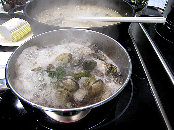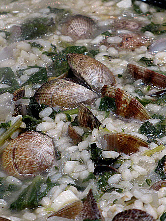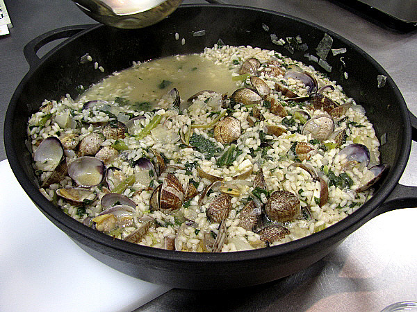 Quan a l'arròs li faltin 10 minuts hi afegirem les cloïsses amb la seva salseta.