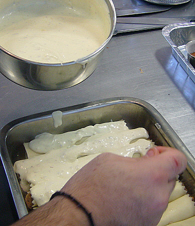 Reportatge del procés. Incorporació de la beixamel i finalització del plat