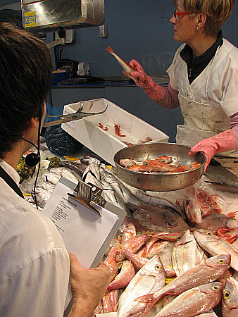 Abans de començar la sessió, es va procedir, amb la participació de tots els assistents, a la compra dels ingredients necessaris a les diverses parades del Mercat del Lleó de Girona. Aquest n'és el reportatge.