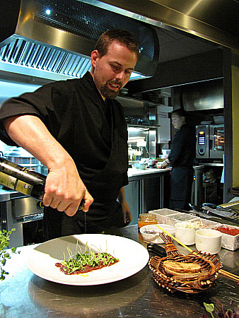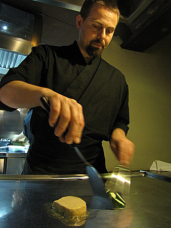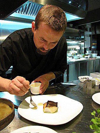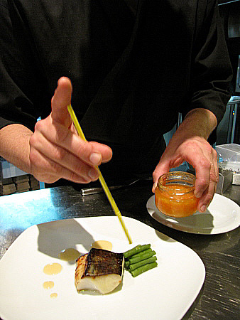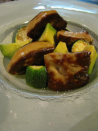 | Foie-gras de l'Empordà a la planxa amb alvocat, carbassó i curri verd.[Pujar] | ||||||||||