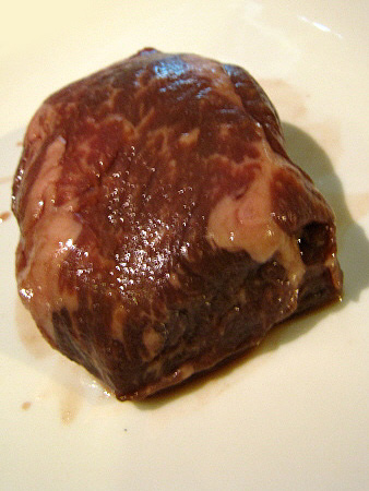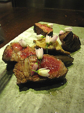 | Tall de vaca a la flama a l'aroma d'all silvestre.[Pujar] | ||||||||||