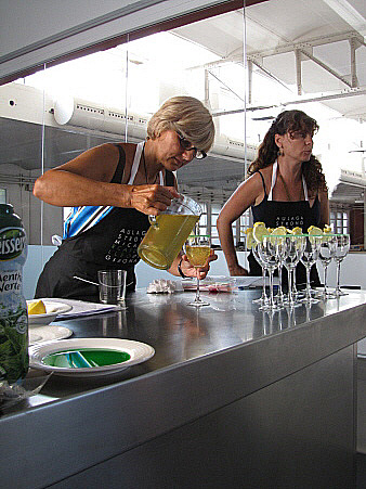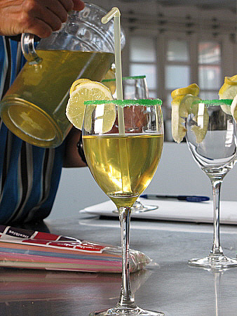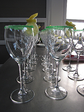 Es pot decorar la copa submergint la vora en xarop de menta verda i sucre, i afegir-hi unes rodelles de llimona.
