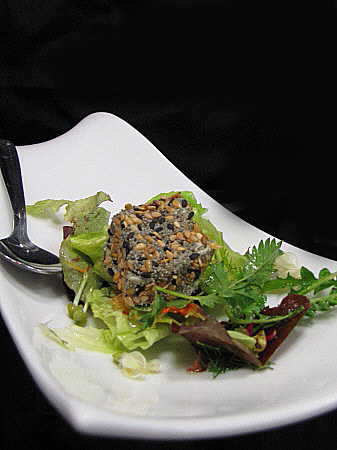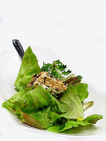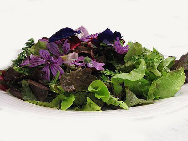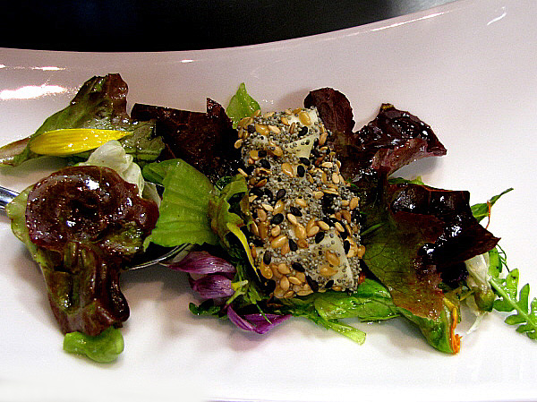 Amanida de flors, formatge cremós i llavors