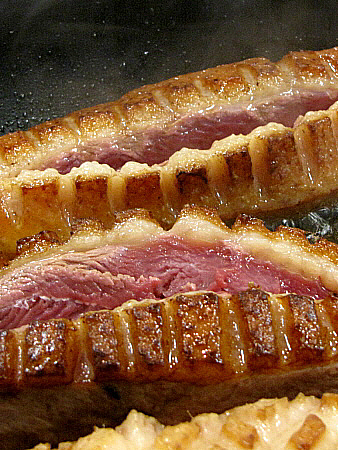 Ara solament ens caldrà donar la volta al magret, i pel costat de la carn coure uns minuts, fins tenir la carn al nostre gust.