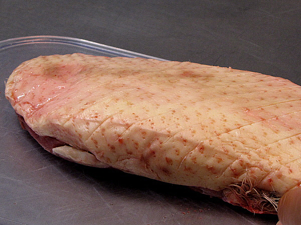 Abans de res, caldrà fer-hi uns talls perpendiculars, pel costat de la pell, per obtenir una mena de quadriculat.