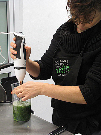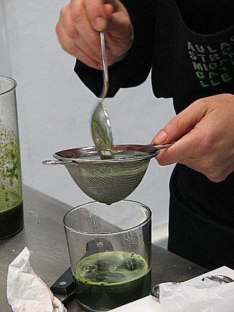 Liqüem les fulles i la tija de la borratja. Fem el suc de llimona i ho posem en una cocktelera juntament amb la ginebra i el gel.