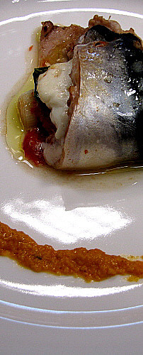 Farcell de salmó fumat amb salsa de mostassa dolça