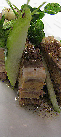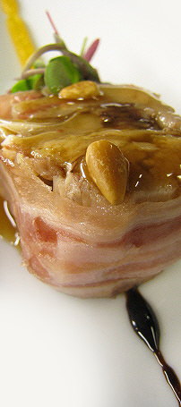 Terrina de peus de porc amb escamarlans i tallarines de sèpia