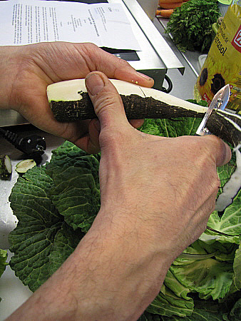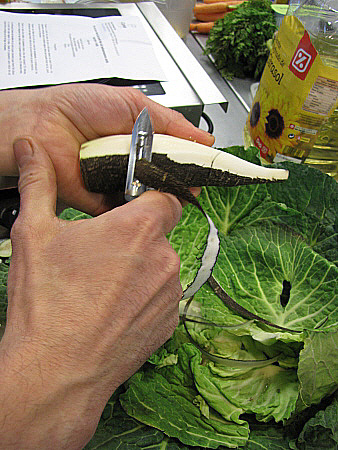Peu de porc farcit de farcellet de col setsemanera amb nap negre i mill