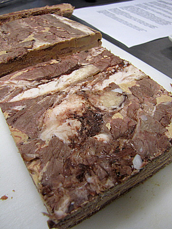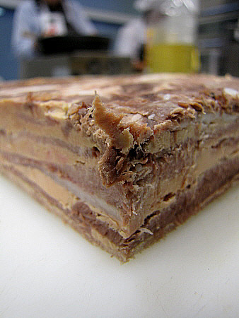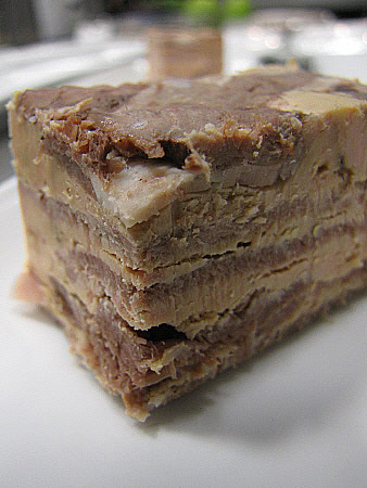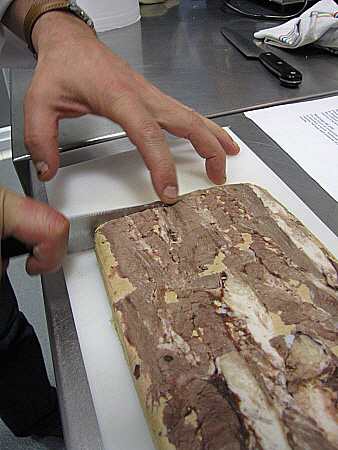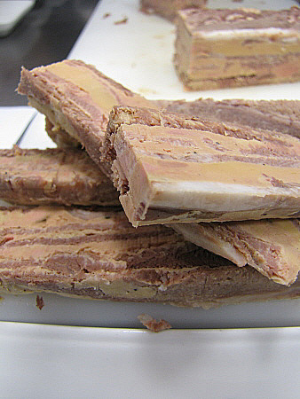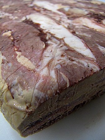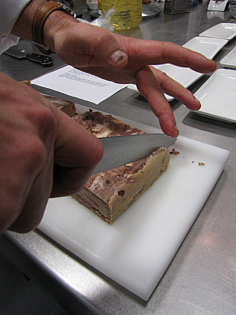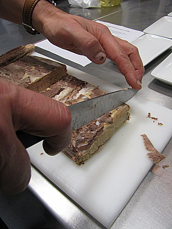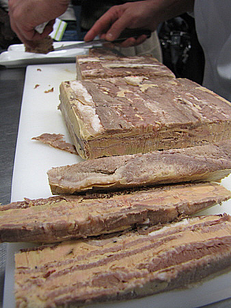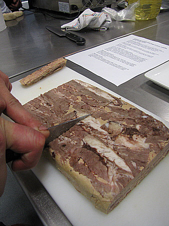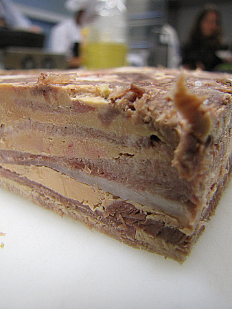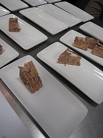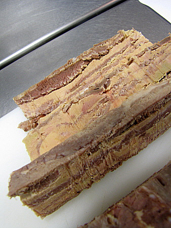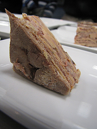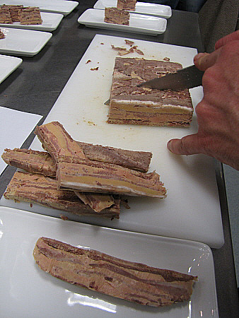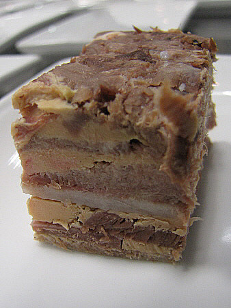 Llengua de vedella amb fetge d'ànec, vainilla, poma verda i brots