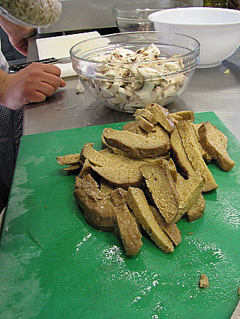 Rostit de seitan amb panses i xampinyons acompanyat de puré de pastanagues