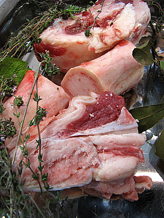 Preparar una salsa de carn, o salsa espanyola, amb les restes de la galta, les verdures tallades petites, les fulles i herbes aromàtiques, i ossos amb moll de l'os per donar-li cos.