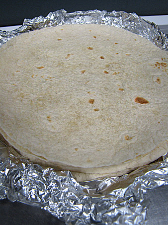 Damunt una capa de tortillas posem la salsa de formatges, els talls de formatges, i ho posem al forn.