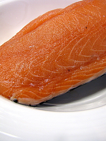 Passat aquest temps, buscarem un tàper i anirem posant cap de salmó, capa d'oli d'oliva i una cullerada de moka rasa de pebre verd.