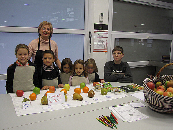 Teresa Farré de l’empresa Blaufruit de Campllong va venir a la nostra Aula a fer-nos un taller de fruita, on parlà de la pera i la poma. Els nens varen poder gaudir d’una sessió especial on reconeixeren la gran varietat de peres i pomes que predominen en la nostra comarca i varen poder degustar-les i preparar una magnífica macedònia.