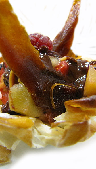 Tartaleta de filo amb fruites de Nadal i salsa de xocolata