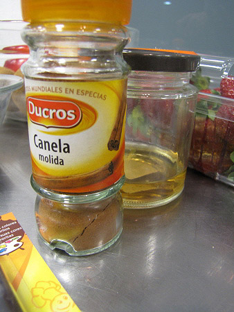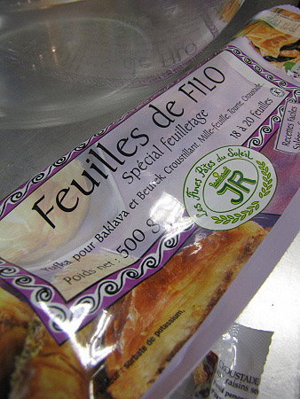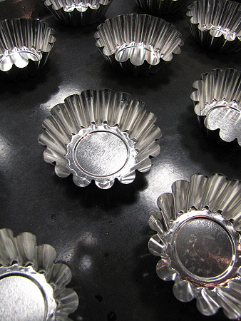 Amb la pasta filo folrem uns motlles, els ensucrem amb sucre glas, i els posem al forn a 220ºC. Retirem quan ja estiguin caramelitzats.