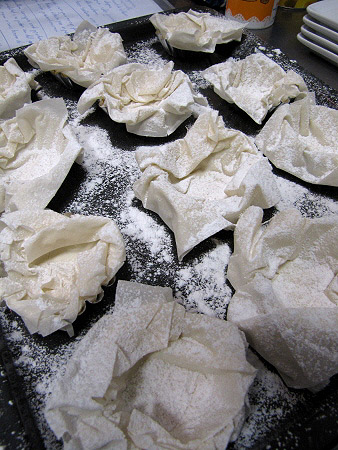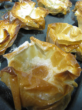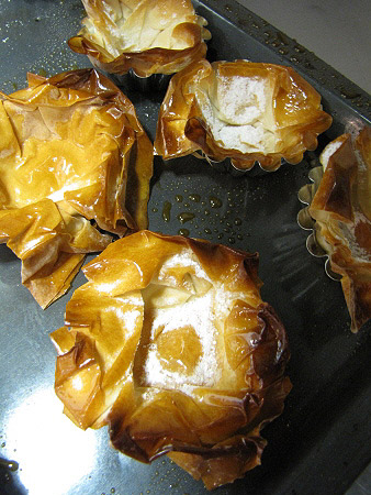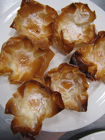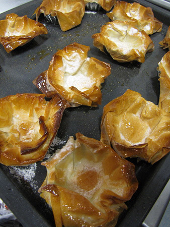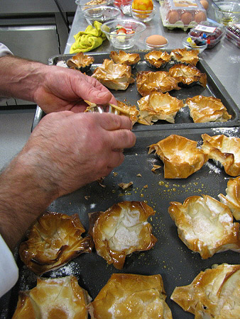 Ensucrat, cocció i desemmotllat de la pasta filo