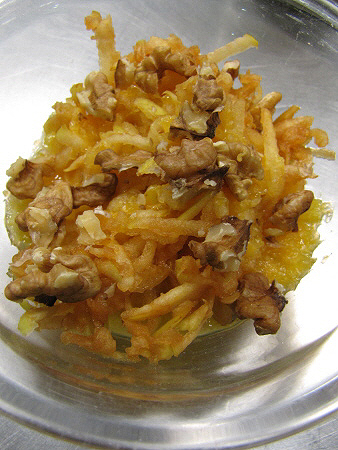 Deixar-ho reposar unes hores, i en el moment de menjar-ho, afegir-hi les nous.