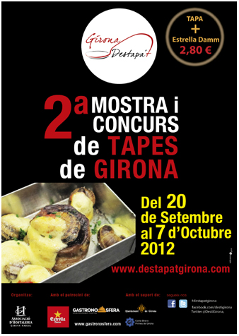 La Mostra i Concurs. L'Associació d'Hostaleria de Girona i Radial, organitza del 20 de Setembre al 7 d'Octubre 2012 el segon Destapa't Girona! - mostra i concurs de Tapes de Girona, que es celebra en bars i restaurants de la ciutat de Girona i rodalies, els quals ofereixen més de 170 delicioses propostes gastronòmiques en format de tapa. La presentació ha tingut lloc a l'Aula Gastronòmica del Mercat del Lleó, a càc del president de l'Associació d'Hostaleria de Girona i Radial, Xavier Nicolazzi, i de la segona tinenta d'alcalde de Girona, Marta Madrenas.