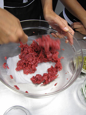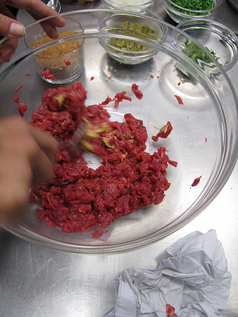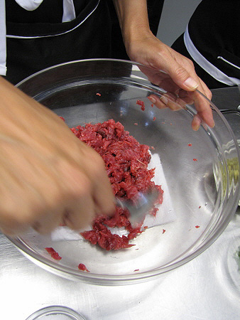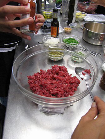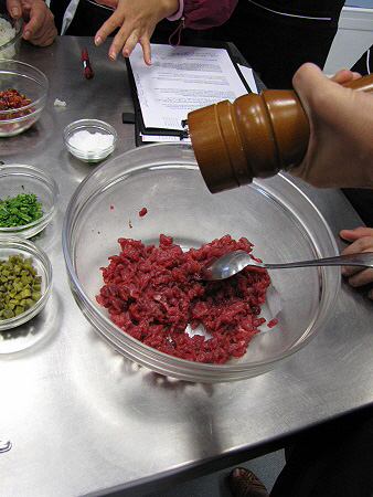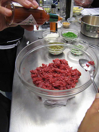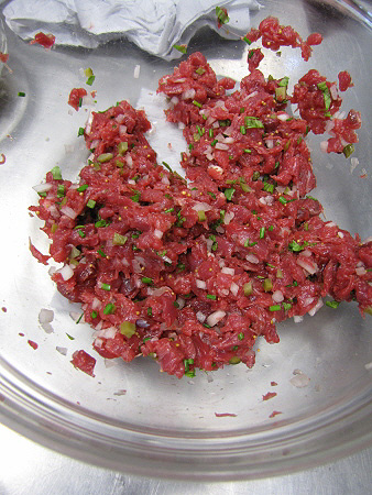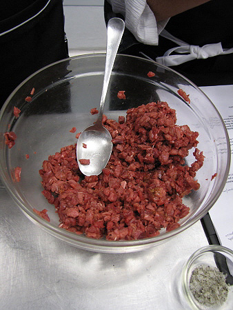 Tàrtar de poltre amb mòres, mostassa i ceba cruixent