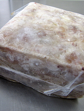 Col·loquem els peus en una terrina per tal de donar-li forma quadrada i els deixem a la nevera unes 12 hores.