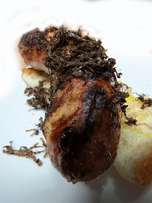 El dijous 29 de gener s'han presentat les jornades al taller de reparació de metalls de Joan Ensesa, un dels espais més singulars del Barri Vell de Girona, seu de l'antic teatre Odeon, on els assistents han pogut gaudir d'un esmorzar a base de pa amb tomàquet i botifarra a la graella amb encenalls de tòfona. |