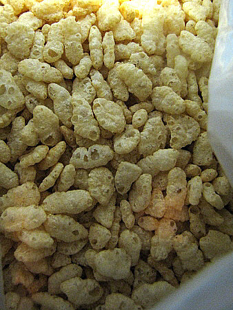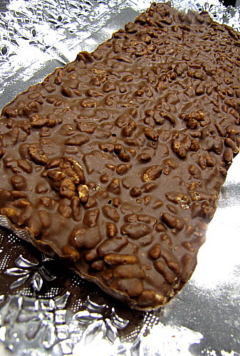 Fondre la xocolata amb llet; mai al bany maria, la humitat que produeix no és convenient per la xocolata. A la sessió s'ha fos amb un soplet d'aire calent. El mateix es pot fer substituint l'arròs inflat per neules, quicos, etc.