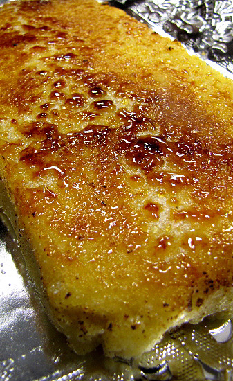 Es posen a bullir 400 gms de sucre i els 100 ml d'aigua. Quan s'obté punt de bola fort, es barreja amb la resta d'ingredients. El resultat l'emmotllarem. Una vegada fred, posarem una capa de gema i esposalrem sucre pel damunt, i el cremarem, preferiblement amb una planxa o ferro de cremar.