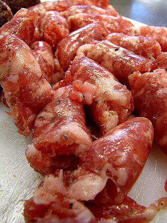 Refugar en una cassola amb oli verge el costelló de porc junt amb les saltsitxes, les ales de pollastre i la cansalada salada. Retirar i dins el mateix oli coure la ceba lentament fins a daurar, incorporar els alls i un cop cuits, la polpa del tomàquet fins a obtenir un sofregit ben concentrat.