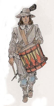 Guerra dels Segadors. Tambor del Batalló Català, 1650. Dibuix de Francesc Riart - (Ampliar)