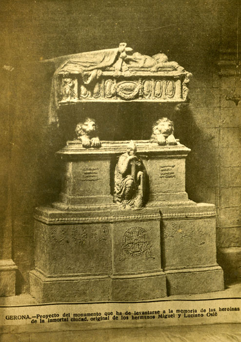 (Ampliar) - Proyecto del monumento que ha de levantarse a la memoria de las heroínas de la inmortal ciudad, original de los hermanos Miguel y Luciano Oslé. 1916. Autor desconegut. CRDI - Ajuntament de Girona.