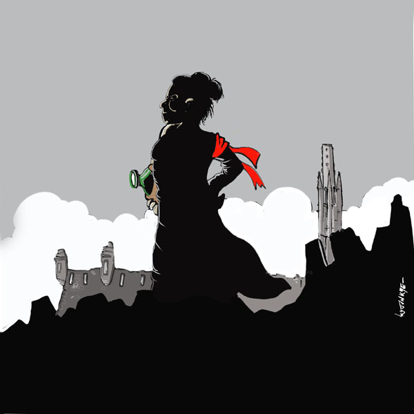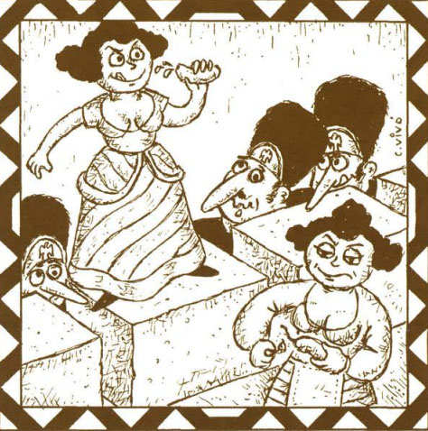 (Ampliar) - Les Heroïnes de Santa Bàrbara. Dibuix còmic de Carles Vivó. Publicat a "Història apòcrifa del xuixo de Girona".