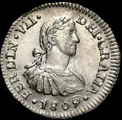 Moneda de Ferran VII, any 1809. Revers. Pes 27,19 grams, diàmetre 37,8 mm